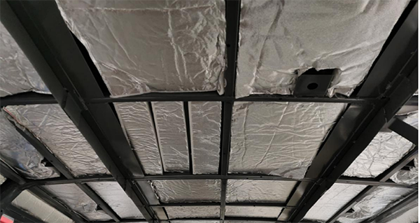 由于影响舱内噪声的因素较多,涉及到指挥控制系统的各个环节,从噪声传递的途径和舱内吸收噪声的角度出发,研究降低舱内噪声的措施主要采取的降噪措施有:改进设计舱门结构,大板搭接缝隙采用密封剂进行处理,提高方舱的密封性,避免外部噪声直接通过缝隙传递;方舱采用汉龙航空耐高低温阻尼材料,避免噪声结构振动传播;方舱内部采用汉龙航空复合隔音棉吸音材料,对舱内的噪声进行吸收。