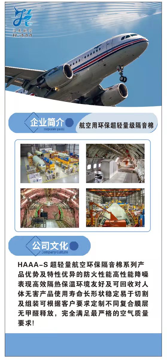 汉龙航空超轻量航空环保隔音棉系列