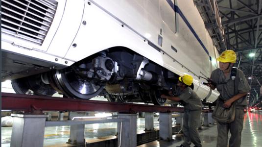 冲击噪声是车轮通过钢轨接头 、轨面单独不平顺 、道岔或擦伤的车轮等在钢轨上滚动时的冲击所引起的噪声, 如低(高) 接头、钢轨剥落、车轮扁瘢等都可以引起附加的轮轨动力和高频振动, 激发车轮和钢轨振动造成轮轨辐射噪声。轰鸣(或滚动) 噪声是通常没有擦伤的车轮在连续焊接、状态良好的直线钢轨上滚动时所发生的噪声, 此部分噪声与轨面和车轮踏面的粗糙度直接有关。由于噪声和振动在 500~2500HZ频率范围内线性相关, 且钢轨在此频率范围内是主要辐射体, 因此抑制钢轨的振动速度, 对降噪起着关键作用。