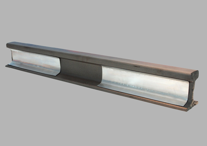 吸振多层约束阻尼钢轨吸振器的横截面与钢轨横截面的轨腰、轨头反面和轨底上面的轮廓吻合, 便于与钢轨贴合安装。使用的胶粘剂对钢轨没有腐蚀作用, 也不影响钢轨的任何功能。